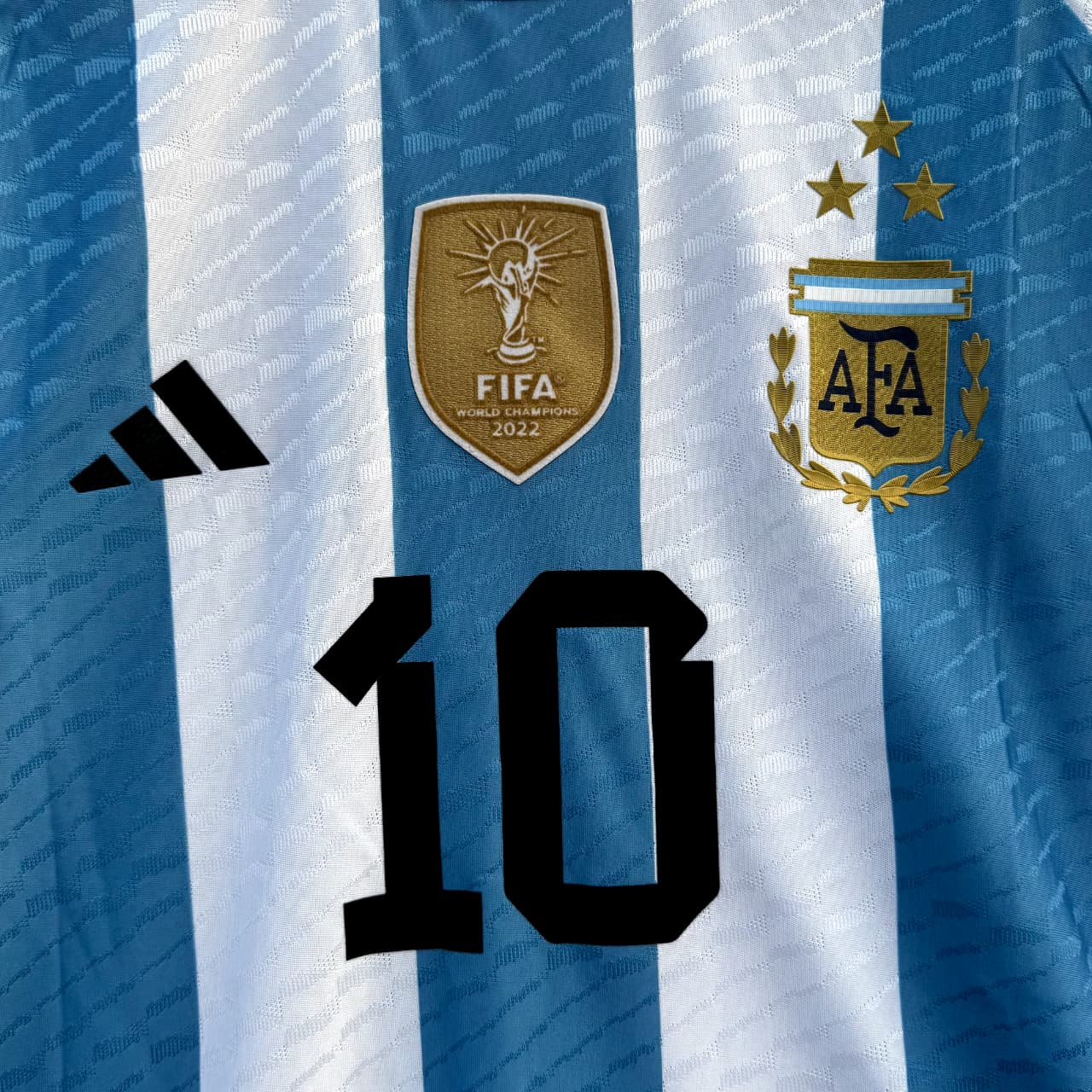 The jersey proudly displays the AFA crest, three golden stars (signifying Argentinaβs 1978, 1986, and 2022 triumphs), and Messiβs leadership etched in every detail. More than just a kit, itβs a piece of football history and a must-have for any Argentina fan.
